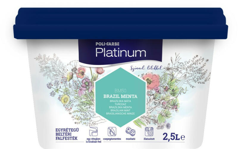 POLI-FARBE PLATINUM EGYRÉTEGŰ BELTÉRI FALFESTÉK A Poli-Farbe Kft. gyártósoráról 2004. óta gördülnek le a Platinum-termékek. Az első évben csak fehér színben, de színezhető formában került a boltok polcaira az egyrétegű, csepegésmentes, mosható és illatosított beltéri falfesték. A következő években a fehér szín mellé egyre több szín sorakozott fel a Platinum-pale