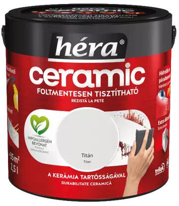 A Héra Ceramic tisztítható beltéri falfesték titán színben a tökéletes választás mindazok számára, akik hosszú távon szeretnék megőrizni falaink makulátlan megjelenését. Ez a festék nemcsak esztétikus és elegáns selyemmatt felületet biztosít, hanem praktikus megoldást is kínál a mindennapi kihívásokra. A Héra Ceramic festék különleges mikrokerámia-gyöngy tartal