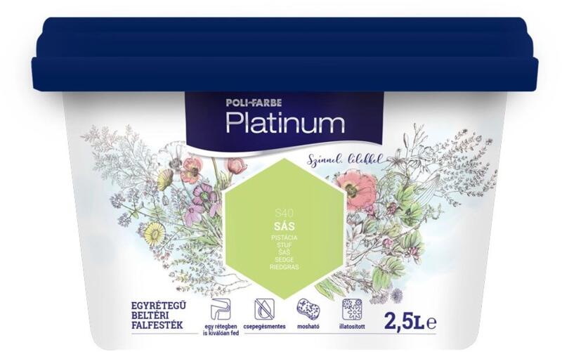 POLI-FARBE PLATINUM EGYRÉTEGŰ BELTÉRI FALFESTÉK A Poli-Farbe Kft. gyártósoráról 2004. óta gördülnek le a Platinum-termékek. Az első évben csak fehér színben, de színezhető formában került a boltok polcaira az egyrétegű, csepegésmentes, mosható és illatosított beltéri falfesték. A következő években a fehér szín mellé egyre több szín sorakozott fel a Platinum-pale