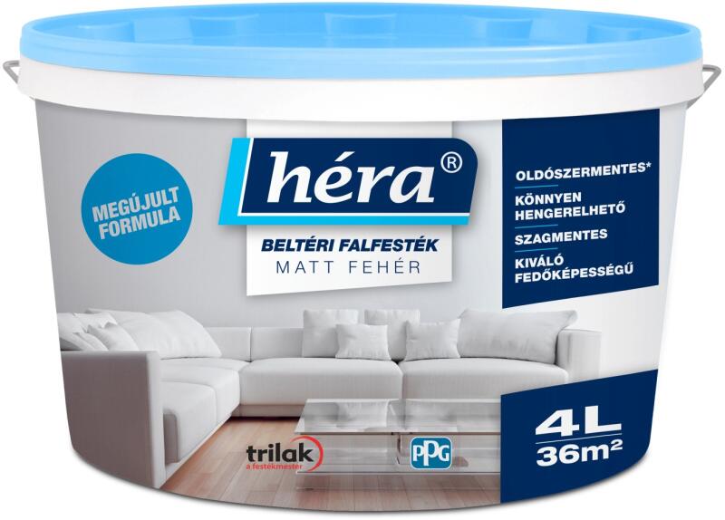 Magas fehérségű, kiváló fedőképességű, könnyen eldolgozható beltéri falfesték, mely Aquakolor színezőpasztával színezhető. Festés előtt Héra Falfix beeresztő használata ajánlott. Kiadósság: 9 m2/l/réteg. A felvitelt követően 2 h elteltével festhető át. Felvitele 2-3 rétegben javasolt.