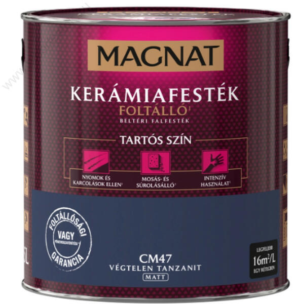 Extra nagy fedőképességű, gélesített, csepegésmentes, akár egy rétegben is fedő festék. Bevonata matt, tartós, könnyen tisztítható. Széles színválasztékban. Kiadósság: 5 l kb. 100 m2.