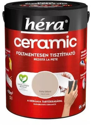 A Héra CERAMIC tisztítható beltéri falfesték, „Puha takaró árnyalatban, a modern lakások és középületek elengedhetetlen választása, amely a legújabb technológiákat ötvözi a maximális tartósság és esztétika érdekében. Ez az 5 literes kiszerelésű festék speciális mikrokerámia-gyöngy tartalmával kiemelkedően ellenállóvá teszi a felületeket, így biztosítva, ho