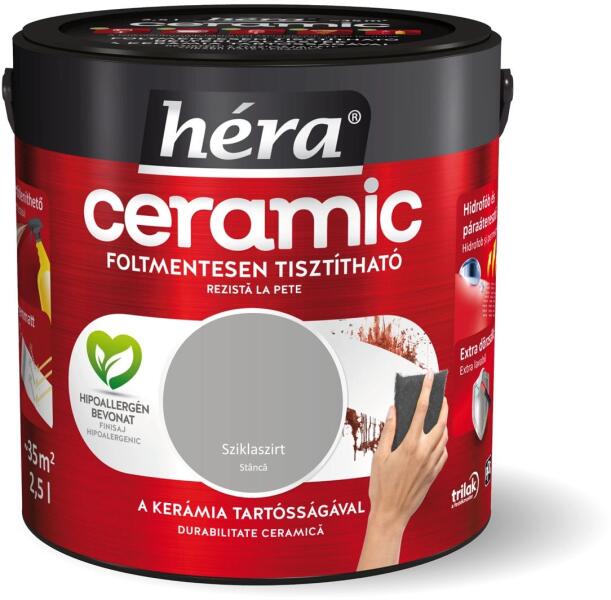 Mosható, dörzsölhető beltéri falfesték a kerámia tartósságával. Foltmentesen tisztítható, hipoallergén bevonat, fertőtleníthető, selyemmatt, hidrofób és páraáteresztő, extra dörzsálló.