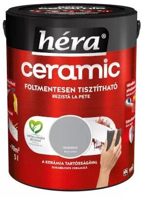 A HÉRA Ceramic tisztítható beltéri falfesték 5 literes kiszerelésben, "Vasbeton" árnyalatban, a legmodernebb technológiával készült, hogy otthona falainak és mennyezeteinek tartós és gyönyörű megjelenést biztosítson. Ez a speciális mikrokerámia-gyöngy tartalmú falfesték kimagasló mosás- és dörzsállóságot nyújt, így felülete könnyedén tisztítható és fertőtlen