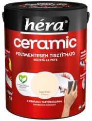 A HÉRA CERAMIC tisztítható beltéri falfesték 5 literes kiszerelésben, „Lágy ölelés árnyalatban, a tökéletes választás mindenki számára, aki a prémium minőséget és tartósságot keresve szeretné otthonát vagy munkahelyét festeni. Ez a kiváló beltéri falfesték különleges mikrokerámia-gyöngy tartalmával biztosítja a falak számára a kiváló mosás- és dörzsáll