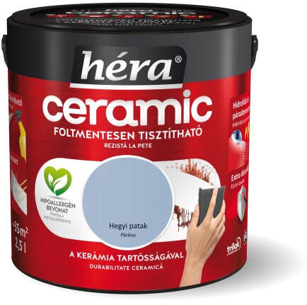 A Héra Ceramic speciális mikrokerámia-gyöngy tartalmának köszönhetően a legellenállóbb Héra beltéri falfesték, mely egészségügyi minősítéssel is rendelkezik! A kerámia technológia kimagasló mosás-és dörzsállóságot biztosít a felületnek, így téve azt foltmentesen tisztíthatóvá és fertőtleníthetővé. A Héra Ceramic falfesték hidrofób alkotórészei révén v