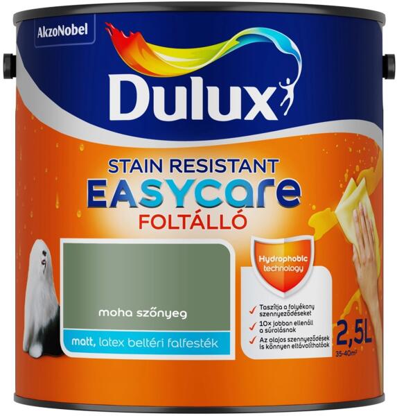 A Dulux EasyCare az első, forradalmi víztaszító tulajdonságú, foltálló beltéri falfesték. A festék egyedülálló összetételének köszönhetően a falról lepereg a víz és a legtöbb folyékony szennyeződés, amelyek így nem hatolnak mélyen a bevonatba. Rendkívül ellenálló felületet hoz létre, amelyről gyerekjáték a kosz eltávolítása. 48 színben kapható. Alkalmazá