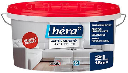 Héra belső falfesték Könnyen eldolgozható, kiváló fedőképessége mellé magas fehérség párosul. A matt bevonat esztétikus megjelenést ad. A fal természetes szellőzését nem gátolja, lég- és páraáteresztő. Vakolt, meszelt vagy bármilyen, korábban már más diszperziós festékkel festett, beltéri falfelületre, gipszkarton felületre, fűrészporos tapétára, üvegszövet