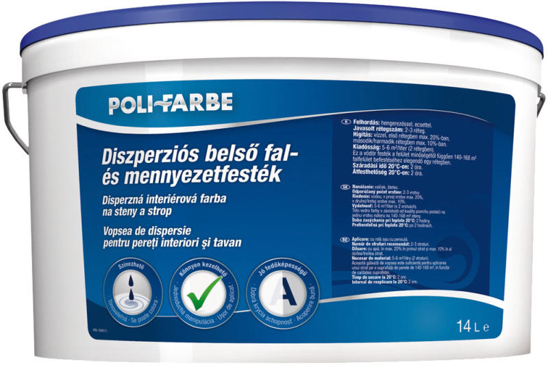 A közkedvelt receptúra 2021. február közepétől új köntősben! Különleges minőségű, illatosított termék. Az ország számos pontján elérhető Poli-Farbe színkeverő rendszeren több ezer árnyalatra színezhető. Bevonata matt, tartós, esztétikus, jó pára- és légáteresztő. Felhordás: ecsettel vagy hengerrel Javasolt rétegszám: 2-3 réteg Kiadósság: legfeljebb 11 m 2 /