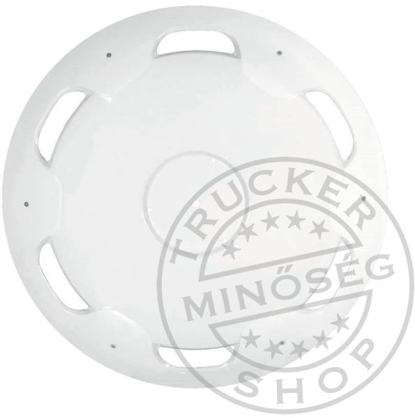 Porfestett fém dísztárcsa 22,5 colos kerékre. Lapos kialakítása miatt a hátsó (dupla) kerékre javasolt. Rögzítés: csavaros (tartozék műanyag adapterekkel) Anyaga: porfestett acél Alkalmazás: Mercedes, Mitsubishi, BMC, Daf, Volvo, Neoplan, Scania, Man, Setra, Iveco, Chrysler, Renault, Bova, Wanholl, Ford Fehér színben