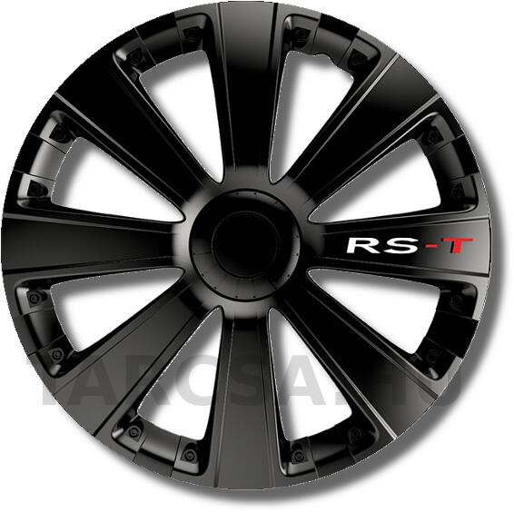 Fekete festett dísztárcsa fehér-piros RS-T felirattal. Fedés 76%.