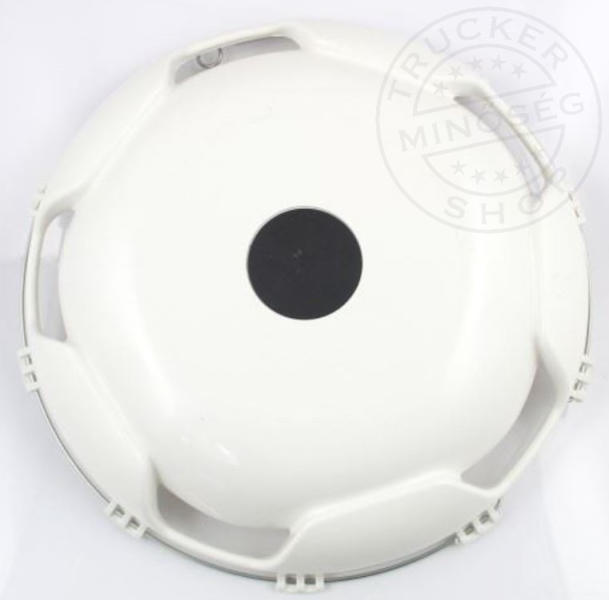 Műanyag dísztárcsa 22,5 colos kerékre. Domború kialakítása miatt az első (szimpla) kerékre javasolt. Rögzítés: pattintós (műanyag körmökkel a felni belső felületén) Anyaga: műanyag, magasfényű felülettel Teljes magasság: 10,5 cm (rögzítő körmökkel együtt) Teljes átmérő: 58,5 cm (rögzítő körmökkel együtt) Alkalmazás: Mercedes Travego buszokon (univerzális r
