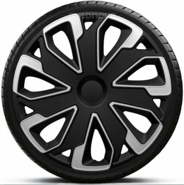 Fényes fekete alapon ezüst betéttel ellátott 9 küllős dísztárcsa króm karikával. A dísztárcsa nejlon csomagolásban előre szerelt. Fedése 83%. 9 központozóval