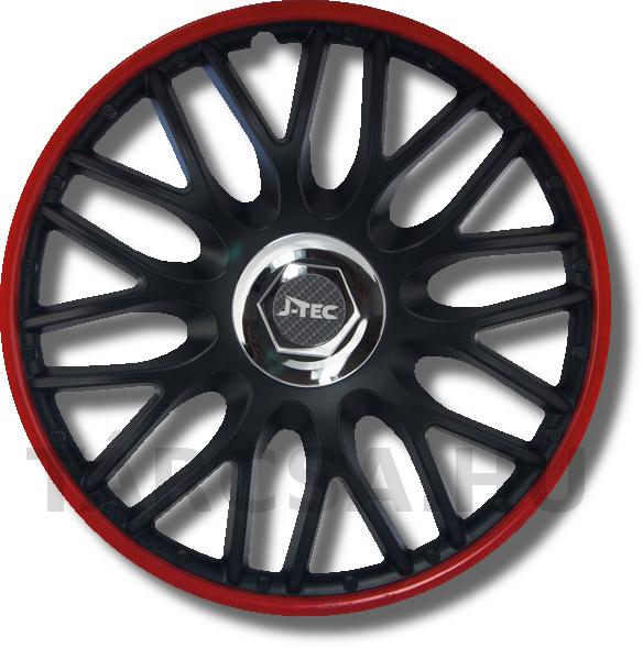 Sok küllős matt fekete Orden dísztárcsa króm középpel és pirosra festett széllel.