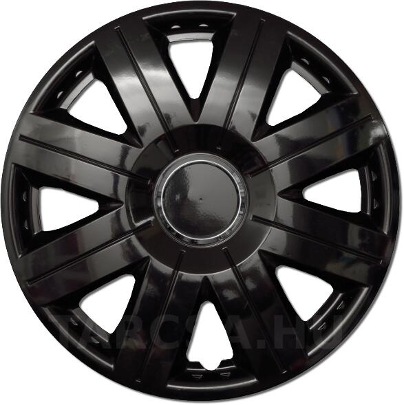 8 küllős króm gyűrűs lakk fekete felületű dísztárcsa 8 osztott kapaszkodó körömmel. Szerelt peremdróttal a csomagolásban. 87%-os fedés.