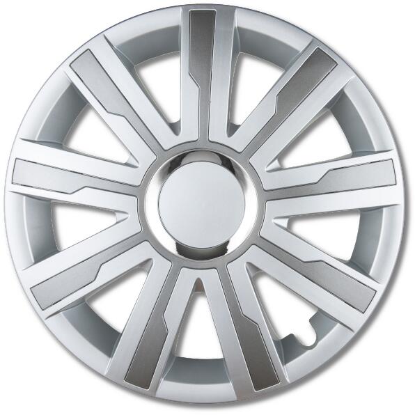 Ezüst alapon grafit betéttel ellátott 9 küllős dísztárcsa króm karikával. A dísztárcsa nejlon csomagolásban előre szerelt. Fedése 83%. 9 központozóval is