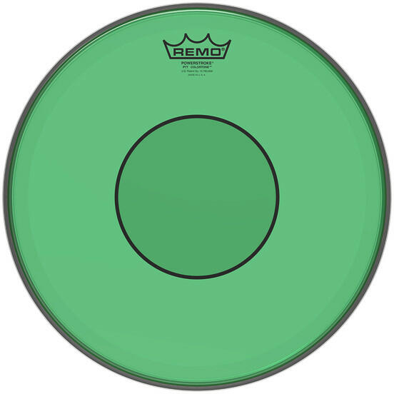 REMO Powerstroke 77 COLORTONE, színes dobbőr ( Made in USA ) Jellemzői: Méret: 14" ( 35,6 cm ) Vastagság: 2 x 7-mil Mylar film ( 2 x 0,178 mm ) beépített alsó tompító karikával és felső koronggal a közepén - látványos megjelenés, erőteljes hangzással, rövid lecsengéssel - extra tartósság - anyagában színezett - szín: Green ( GN ) Megrendelésre 8-10 napos szállítási h