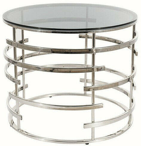 Modern elegancia és időtlen dizájn egy bútordarabban A Livia dohányzóasztal egy lenyűgöző modern bútor, amely tökéletesen ötvözi a funkcionalitást és a stílust. A 60 cm átmérőjű, kör alakú asztal füstüveg lapja elegáns kontrasztot alkot a krómozott fém vázzal. A geometrikus mintázatú váz különleges, spirális kialakítása egyedi megjelenést kölcsönöz a darabn