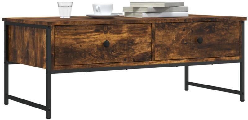 Díszítse nappaliját ezzel a stílusos dohányzóasztallal, mely könnyedén beleolvad otthona berendezésébe. Tartós anyag: A szerelt fa kivételes minőségű, sima felületű, szilárd, stabil, és ellenáll a nedvességnek. A szerelt fából készült kanapéasztal könnyen tisztítható. Bőséges tárolóhely: A 2 fiókkal ellátott kisasztal bőséges tárhelyet kínál folyóiratai, k