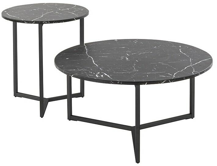 Ravelo dohányzóasztal Az egyszerű kerek Ravelo dohányzóasztalok készlete minden típusú enteriőrbe tökéletesen illeszkedik. Használhatja őket például a nappaliban, az irodában, a váróteremben vagy a recepción. A készlet 2 különböző méretű táblázatot tartalmaz. Az edzett üvegből készült, márványutánzatú felső lapok 3 fémlábakon nyugszanak. Középen fémrudakka