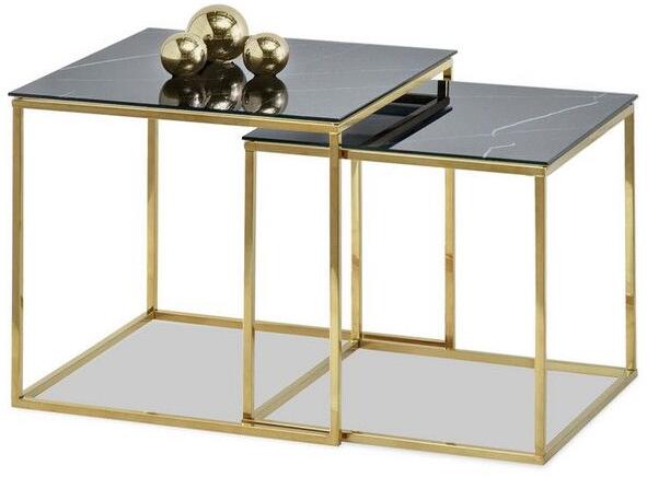 További méretek: Dohányzóasztal PARANA a nagyobb: szélesség - 45 cm mélység - 45 cm magasság - 41 cm Dohányzóasztal PARANA a kisebb: szélesség - 40 cm mélység - 40 cm magasság - 38 cm Felhasznált anyagok: asztallap - laminált üveg lábazat - fém