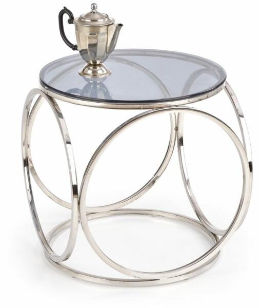 Venus S dohányzóasztal Ez a dohányzóasztal különösen alkalmas modern nappaliba és irodába. Kialakításának köszönhetően ideális az elegancia és a luxus szerelmeseinek. A dohányzóasztal érdekes kialakítású. Az asztal szerkezetemasszív krómozott acélból készült ezüst színben. Az asztal teteje üvegből füstszínű kivitelben. A felső polc terhelhetősége 20 kg. Venus