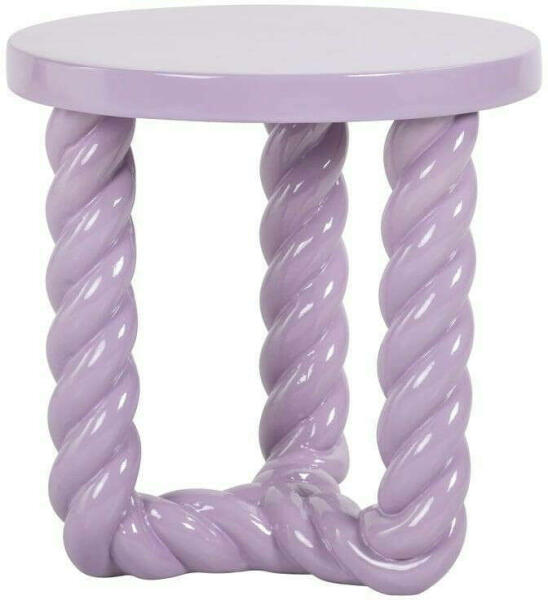 RICHMOND asztal ROSLY lila. Gyönyörű, egyedi forma és kialakítás pasztellszínű kivitelben. A kerek lap a fonott talppal kombinálva műgyantából készült. A világos lila árnyalat bájt kölcsönöz, és számos belső teret díszít. Más színváltozatok is kaphatók. Méretek: Magasság 46 cm / szélesség 40 cm / mélység 40 cm. Bruttó súly: 10 kg.