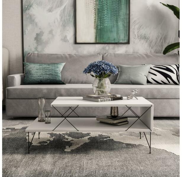 Gyártó: Kalune Design Modell: 854KLN2826 Leírás: Kávésasztal a kéznél lévő dolgok tárolására. Egyszerű, modern stílusának köszönhetően bármilyen otthonba illik. Laminált forgácslapból készült, lábai fémből. Az anyagvastagság: 1,8 cm. Polcmagasság: 23 cm. A lábak magassága: 15 cm.