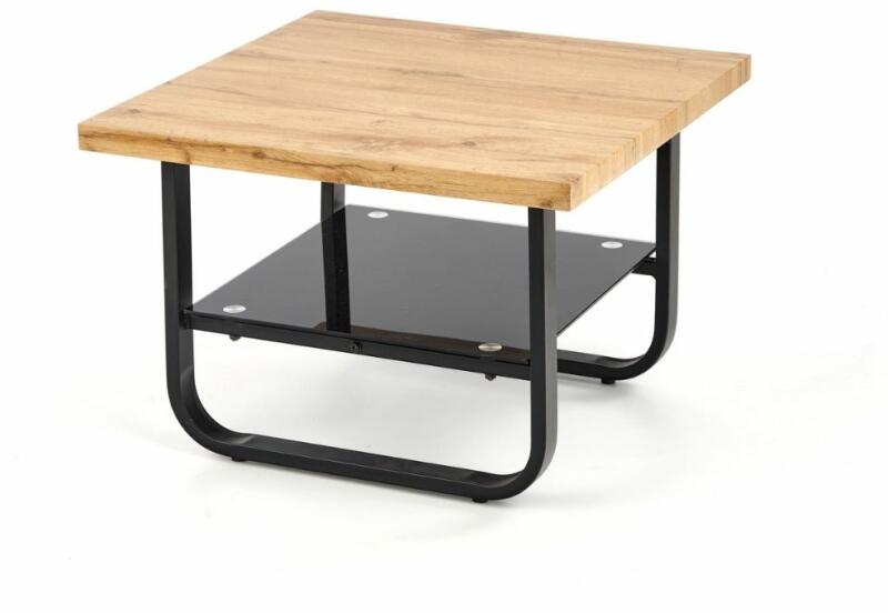 Espinoza négyzet alakú dohányzóasztal Az egyszerű Espinoza dohányzóasztal négyzet megfelelő kiegészítője otthonának, de a fogadásokon, szállodai szobákban vagy kávézókban is szépen kiemelkedik. A fedőlap színe furnérból készült természetes fából. Az asztal alatt egy fekete polc található, amelyedzett üvegből készült. Az asztal stabilitását a szintén fekete sz