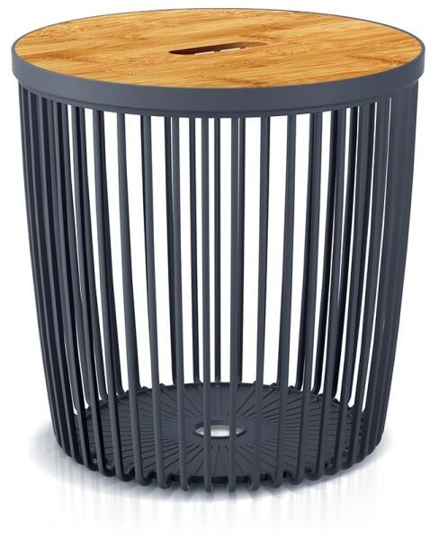 Univerzális kosár bambusz tetővel, 100 l Tárolóhely vagy kisasztal? Döntsd el magad! Ez az univerzális kosártöbb megoldást kínál egy termékben. Használd asztalként egy csésze kávé lerakásához, és bátran tárolj benne takarót. A kosár tömör műanyagból, alevehető fedéle pedig bambuszból készült. A fedél átmérője 59 cm.