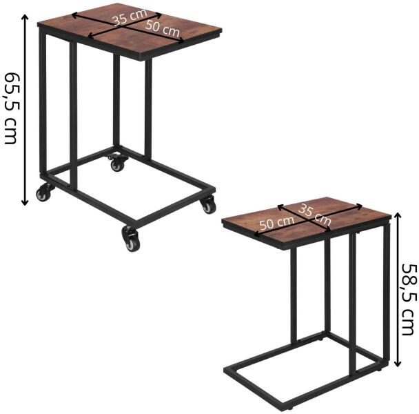 Alapvető adatok:Márka: Springos®Anyag: Springosos Springos: Anyag: 1,5 mm:Szín: fekete, barnaMaximális terhelhetőség: 75 kgMéretek: Kerekeken álló asztal teljes magassága: 65,5 cmAsztallap görgőkön: 50 x 35 cmKisebb asztal teljes magassága: 58,5 cmA kisebb asztal asztallapja: 50 x 35 cmA lap vastagsága: 3,5 cmA kerekes asztal lábai közötti távolság: 30 / 15 cmA kisebb asztal l