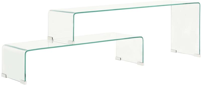 Vigyen egy kis modern bájt otthonába ezzel a minimalista stílusú és időtálló dohányzóasztallal! A nappali asztal edzett biztonsági üvegből készült, amely biztonságosabb és erősebb, mint a normál üveg, ezért az asztal erős és tartós. A kétrészes kivitelnek köszönhetően az asztal hossza akár 190 cm is lehet. Az üveg dohányzóasztal nedves ruhával könnyen tisztíthat