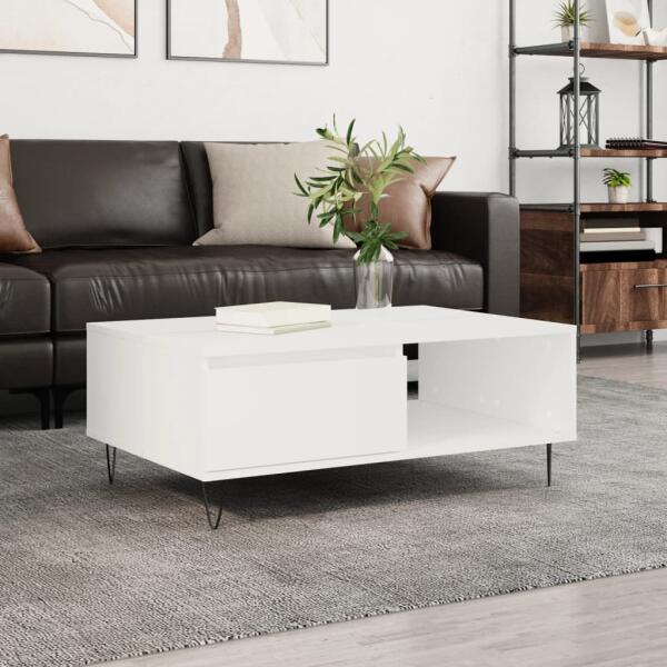 Gyártó: vidaXL Modell: 817080 Leírás: Ez a stílusos dohányzóasztal egy csipet eleganciát kölcsönöz otthonának. Prémium minőségű anyag: A szerelt fa kivételes minőségű, sima felületű, szilárd, stabil és ellenáll a nedvességnek. További tárolóhely: Ez a nappaliasztal három rekesszel rendelkezik, melyek tökéletesen használhatóak privát és gyakran használt kelléke