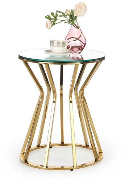 Afina S dohányzóasztal Az Afina S arany dohányzóasztal a modern enteriőr dísze lesz, megszépíti a nappali, társalgó, kávézó vagy váróterem. Méreteinek köszönhetően kisebb helyiségekben is tárhelyet biztosít. A kerek tetejű, 45 cm átmérőjű üvegből készült üveglap egyrozsdamentesre kerül acél szerkezetet. Egy felső és egy alsó gyűrűből áll, amelyeket atipikus