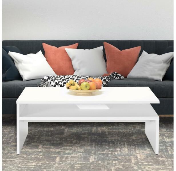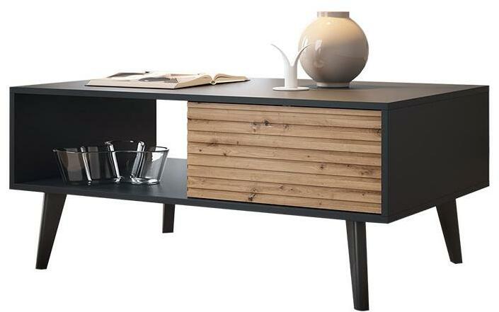Egy dohányzóasztal, amelyen tárolhatja azokat a dolgokat, amelyeket kéznél szeretne tartani. Egyszerű, modern stílusával bármilyen otthonba illik. Vastag laminált lemezből készült, legfeljebb 18 mm vastagságban. Fából készült lábakkal, amelyek magassága 20 cm. PUSH TO OPEN nyitórendszerrel. Ez a bútordarab szétszedve érkezik.