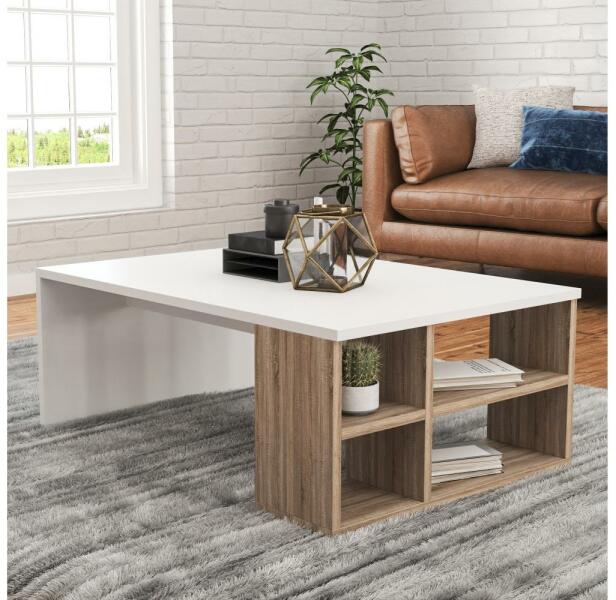 Gyártó: Elegance Modell: 793ELG2809 Leírás: Kávésasztal a kéznél lévő dolgok tárolására. Egyszerű, modern stílusának köszönhetően bármilyen otthonba illik. A fa és a fehér szín kombinációja. Laminált forgácslapból készült. Az anyagvastagság: 1,8 cm.