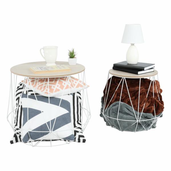 Kisasztal DALUX Anyag: MDF/fém Színe: természetes/fehér Nagyobb asztal mérete (SzéxMéxMa): 50x50x40 cm Kisebb asztal mérete (SzéxMéxMa): 40x40x35 cm Szállítás: összeszerelve
