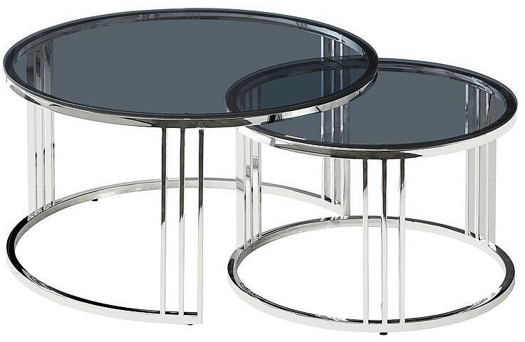 Vienna dohányzóasztal A Vienna dohányzóasztal-készlet tökéletes otthonok, éttermek, szállodák, de cégek modern enteriőrjébe. Az üde megjelenés a füstölt edzett üvegnek, amely mindkét asztal felső tányérját képezi, és a kör alakú konstrukciónak a ból készült. >rozsdamentes acél fényes kivitelben . A nagyobb asztal méretei: 85 × 45 cm (átmérő × magasság) A