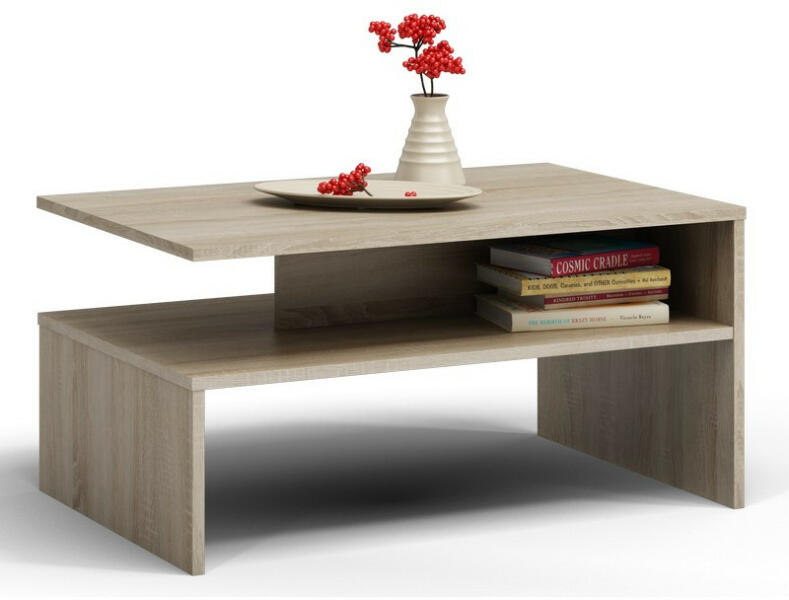 Leon III NEW Dohányzóasztal Sonoma – Természetes és Praktikus Választás A Leon III NEW dohányzóasztal természetes Sonoma tölgy színével és modern dizájnjával tökéletes kiegészítője lesz nappalijának. Méretei (90×60×45 cm) ideálisak mindennapi használatra, miközben a 16 mm vastag laminált lap stabilitást és tartósságot biztosít. Könnyen tisztítható, felülete p