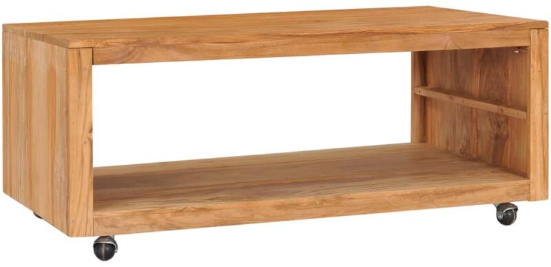 Az elegáns kialakítását népszerű rusztikus stílusú asztaloktól kölcsönző dohányzóasztal csodálatosan ragadja meg a modern minimalizmus szellemét. Ez a fa asztal tömör tíkfából készült, így szilárd és tartós. A természetes olajos felületkezelésnek köszönhetően az asztal felülete sima, könnyen tisztítható, és rendszeresen ápolható. Az asztal alján lévő polc