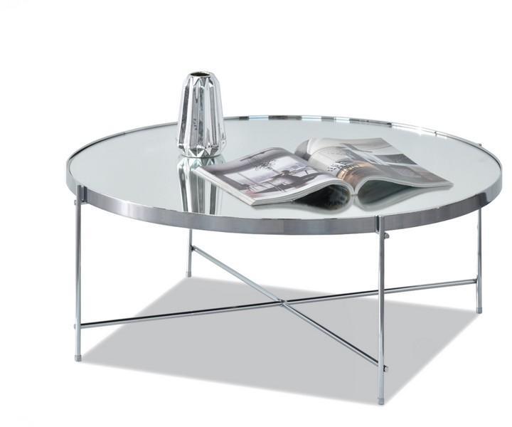 Felhasznált anyagok: asztallap - ezüstre színezett üveg lábazat - fém Színek: asztallap - tükrös ezüst lábazat - króm