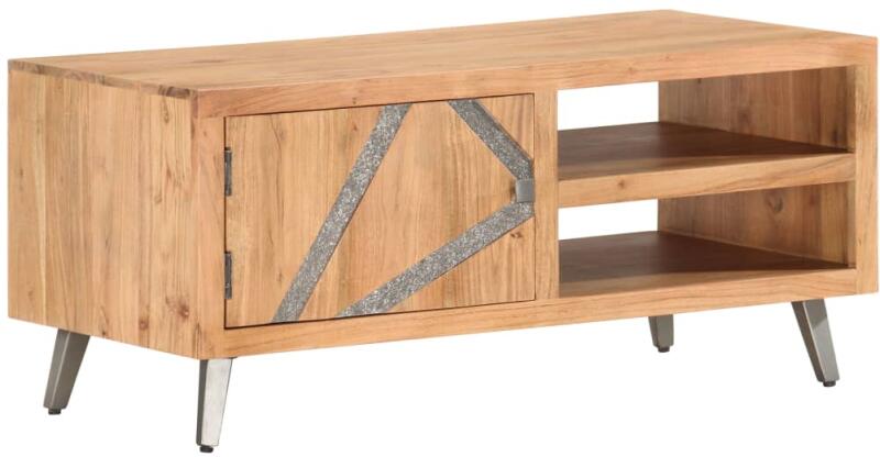 Anyaga: tömör akácfa, acél Teljes mérete: 90 x 45 x 40 cm (Ho x Szé x Ma) Szekrény mérete: 90 x 45 x 30 cm (Ho x Szé x Ma) 2 rekesszel és 1 csíkos mintával ellátott ajtóval Csiszolt, festett és lakkozott Összeszerelést igényel: igen Ez az ipari stílusú fa dohányzóasztal vintage bájt sugároz, és kortalan kiegészítője lesz enteriőrjének. Ennek az akácfából készült