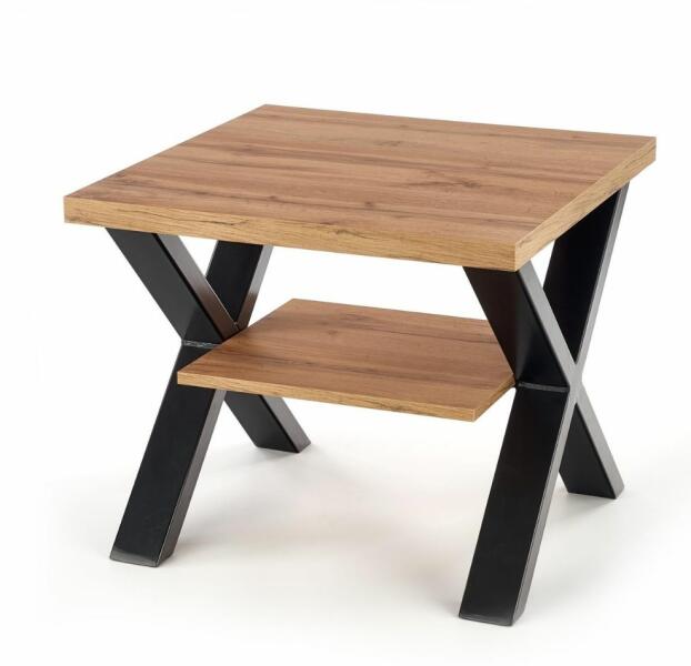 Venom X négyzet alakú dohányzóasztal Ez a dohányzóasztal különösen alkalmas modern nappaliba és irodába. Kialakításának köszönhetően kisebb helyekre ideális. A dohányzóasztal érdekes, de praktikus kialakítású. Az asztal lábaimasszív porszórt acélból készülnek fekete színben. Az asztallapok lamináltból készülnek, ABS élekkel, wotan tölgy színben. A felső tár