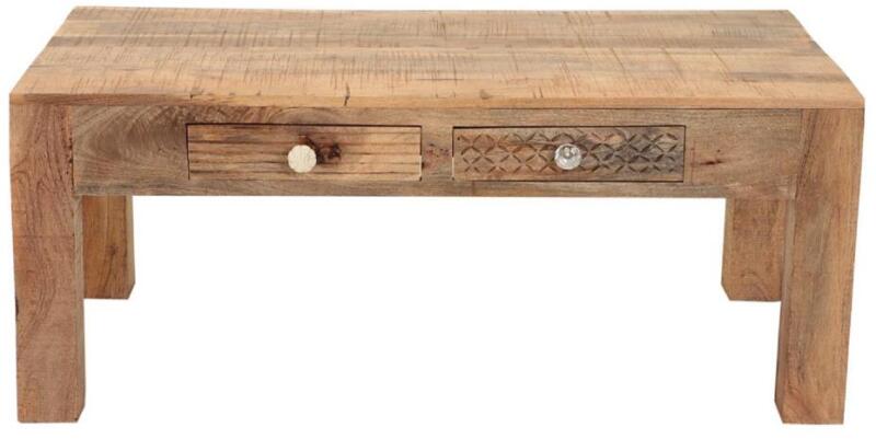 Indiai mangóból készült, masszív tömörfa dohányzóasztal. A mangófa kivételes tartósságáról és egyedi megjelenéséről ismert. Praktikus fiókok különböző típusú fogantyúkkal. A fiókajtók kézzel faragott díszekkel díszítettek. Minden bútordarab eredeti, és természetes és egzotikus jelleget kölcsönöz a belső térnek. Ökológiai választás, egyedi megjelenés.