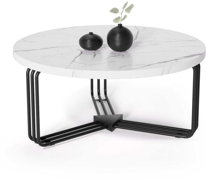 A dohányzóasztal modern kialakításúVonzó dizájn Az Antica kerek kávé Az asztal lenyűgözi reprezentatív megjelenésével, amellyel modern nappalit és kereskedelmi tereket, például tárgyalót is díszít. Az asztallap anyaga >farost anyag és furnér márványutánzatban. Az asztal stabilitását az atipikus kialakításúfém alap biztosítja.