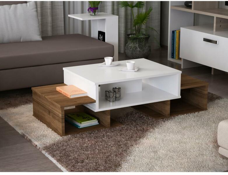 Gyártó: Furny Home Modell: 756FRN2816 Leírás: Kávésasztal a kéznél lévő dolgok tárolására. Egyszerű, modern stílusának köszönhetően bármilyen otthonba illik. Laminált forgácslapból készült. Az anyagvastagság: 1,8 cm. A felső polc szélessége: 60 cm. Az oldalsó polcok szélessége: 27,2 cm. Tulajdonságok: 100% melamin bevonatú forgácslap Vastagság: 18 mm Méret: 103