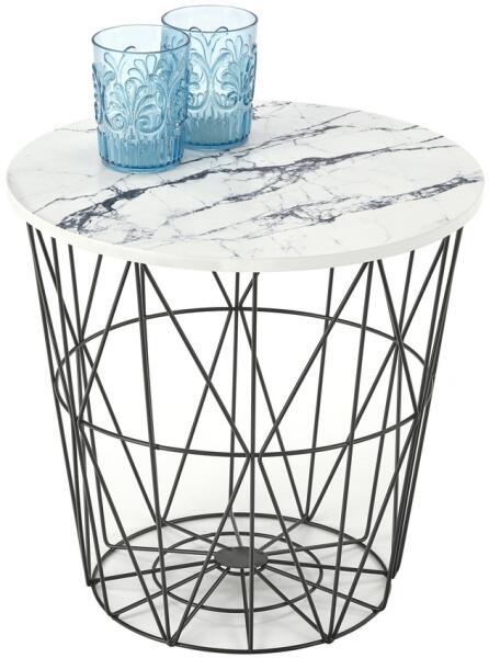 Harissa B dohányzóasztal A szabad teret mindig érdemes maximálisan kihasználni, különösen egy kisebb lakásban vagy irodában. Akkor miért ne szerezhetne be egy dohányzóasztalt és egy tárolókosarat? Az asztallap (vagy fedél) furnérozott MDF-ből készült, érdekesen márvány minta. Akár 10 kg terhelést is elbír. Az alap ekkor fekete porszórt acélból készült drótkosár fo