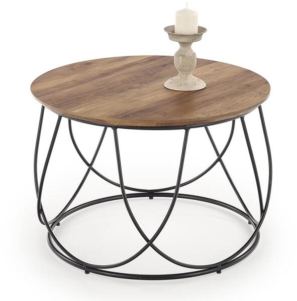 Egyedi kerek NUBIRA dohányzóasztal, amely különleges formákkal rendelkezik. Praktikus és gyönyörű dekoráció is. Élénkítse fel otthonát ezzel az időtálló asztallal. Az asztallap minőségi laminált MDF-ből készült dió színben, míg a szerkezet lakkozott acélból készül fekete színben. A modern színváltozatban készül, így minden modern otthonba tökéletes választá