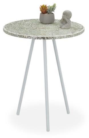 Mozaik Dohányzóasztal Krém Dekoratív mozaik asztallapos dohányzóasztal, fém lábakkal. Minden asztal kézzel készített, egyedi darab, melynek színe és mintája eltérhet. Teljes mérete: 50 x 41 cm (Ma x Ø) Terhelhetősége: max. 10 kg Anyaga: Üveg, MDF, Fém Szín: Krém Súly: 3,4 kg