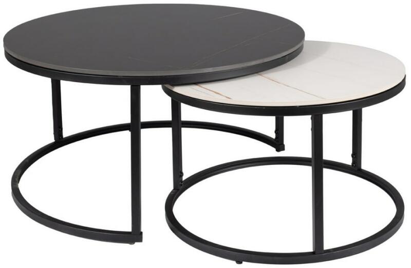 Dohányzóasztal Ferrante A A Ferrante A egy 2, hasonló kialakítású, de eltérő méretű dohányzóasztalból álló készlet. Egyrészt elegánsnak tűnik, másrészt lehetővé teszi, hogy a kisebb asztalt részben vagy teljesen a nagyobb alá csúsztassa, és helyet takarítson meg. Mindkét asztal kör alakú. kerámia felsőrész, amelyet fekete fém talp támaszt meg. Ebben a változatb